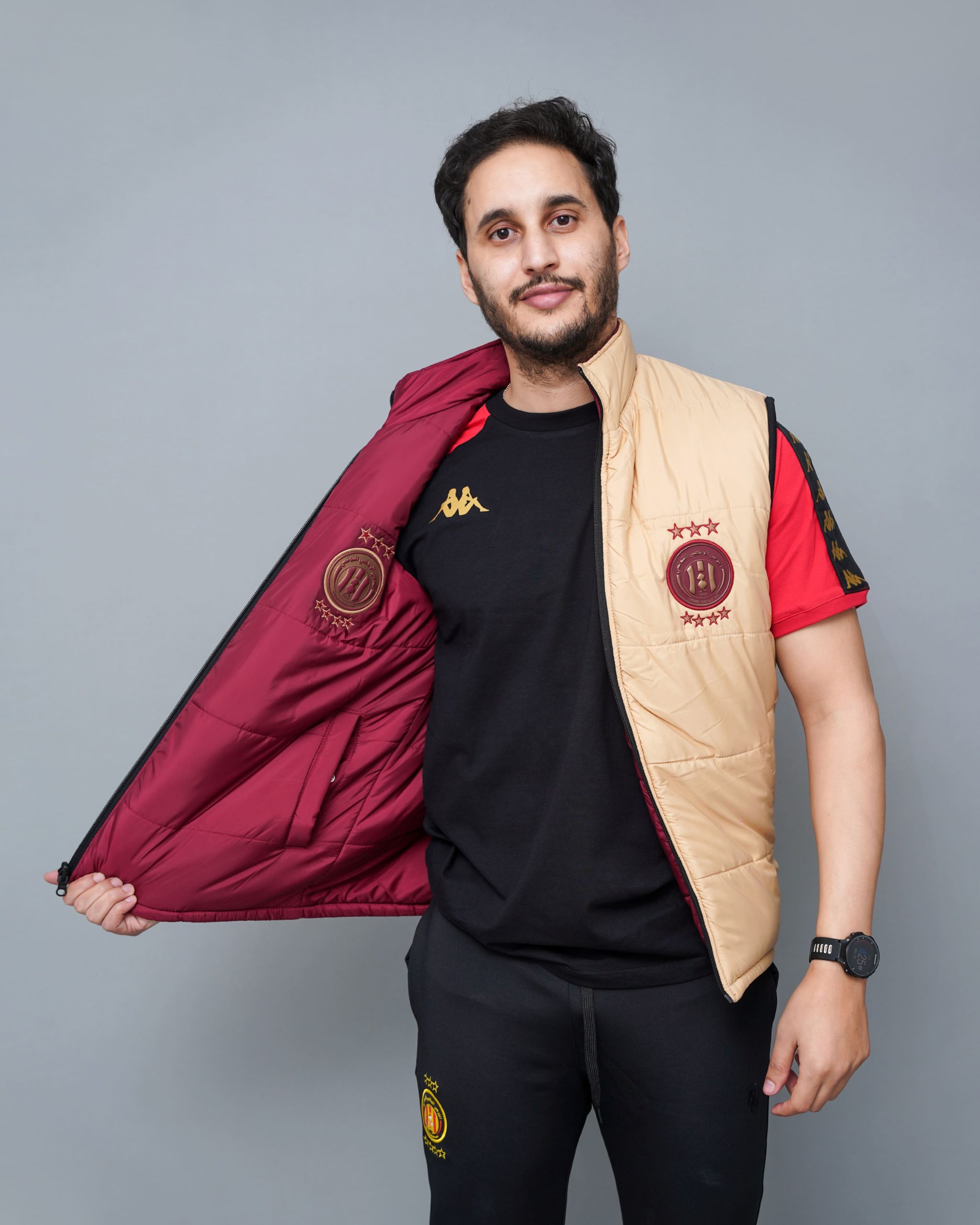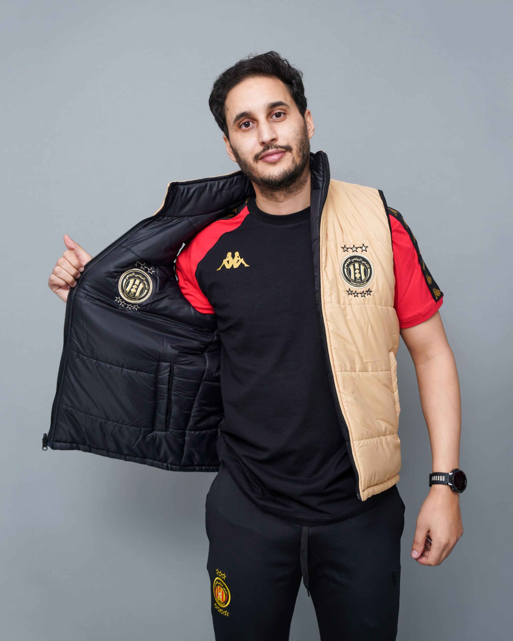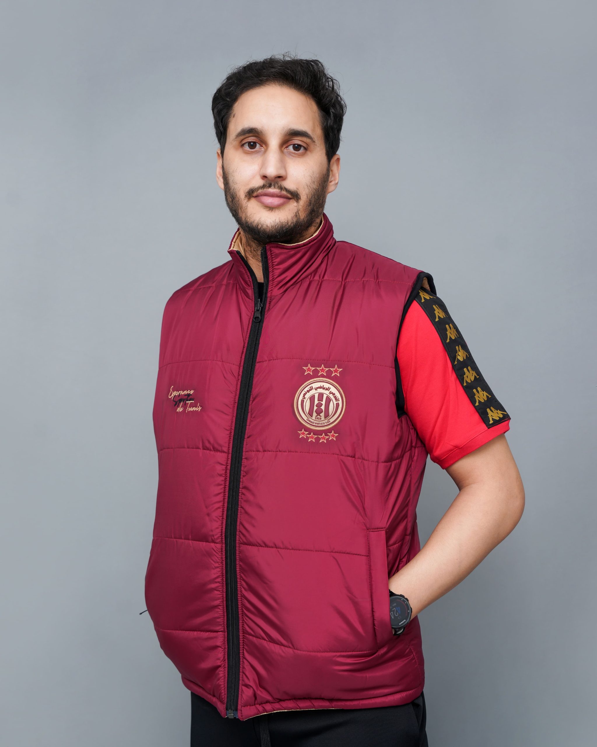Chaque détail a été pensé pour valoriser l’identité de l’Espérance Sportive de Tunis. D’un côté comme de l’autre, les logos sont brodés avec précision pour garantir une finition haut de gamme. Par ailleurs, les coutures en losanges apportent une touche d’élégance moderne. Cette doudoune sans manches officielle est un incontournable pour tous les fans du Taraji.
