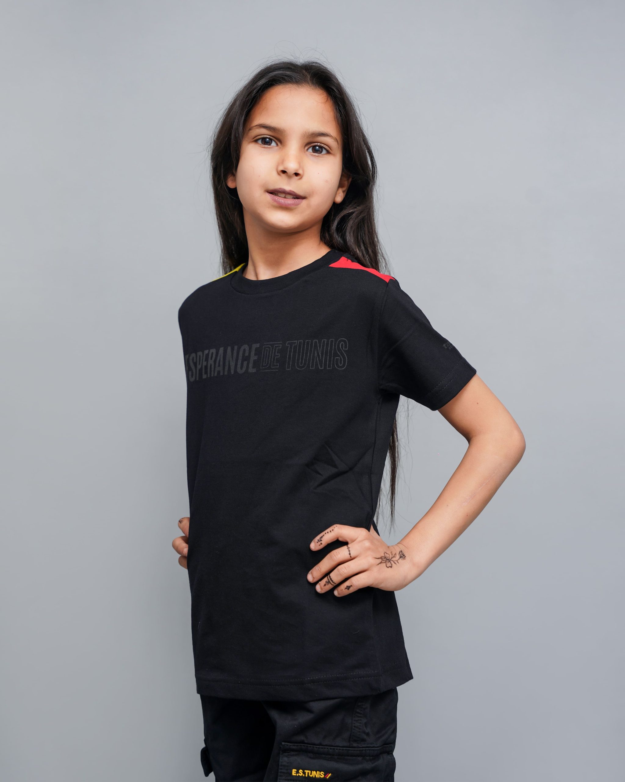 Le T-shirt rentrée Espérance enfant est parfait pour débuter l’année scolaire avec style. Ce modèle noir incarne la sobriété et l’attachement au club. Il fait partie de la nouvelle collection Back to School 2024 du Taraji Store.