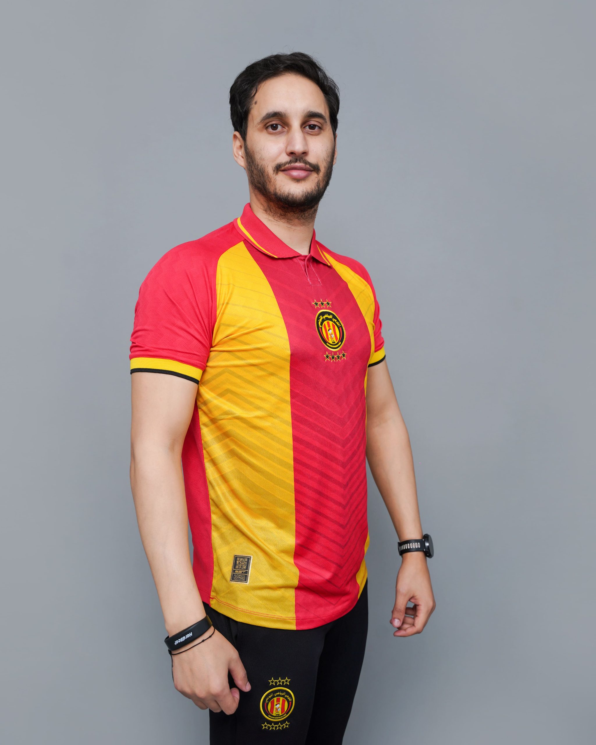 Portez haut les couleurs de votre club avec le T-shirt fan Espérance EST, une pièce incontournable pour tous les inconditionnels de l’Espérance Sportive de Tunis. Arborant fièrement les emblématiques bandes rouges et jaunes, ce modèle a été conçu pour vibrer au rythme du club, aussi bien dans les gradins que dans la vie quotidienne. De plus, avec sa coupe moderne et son style affirmé, il incarne l’âme des vrais supporters.