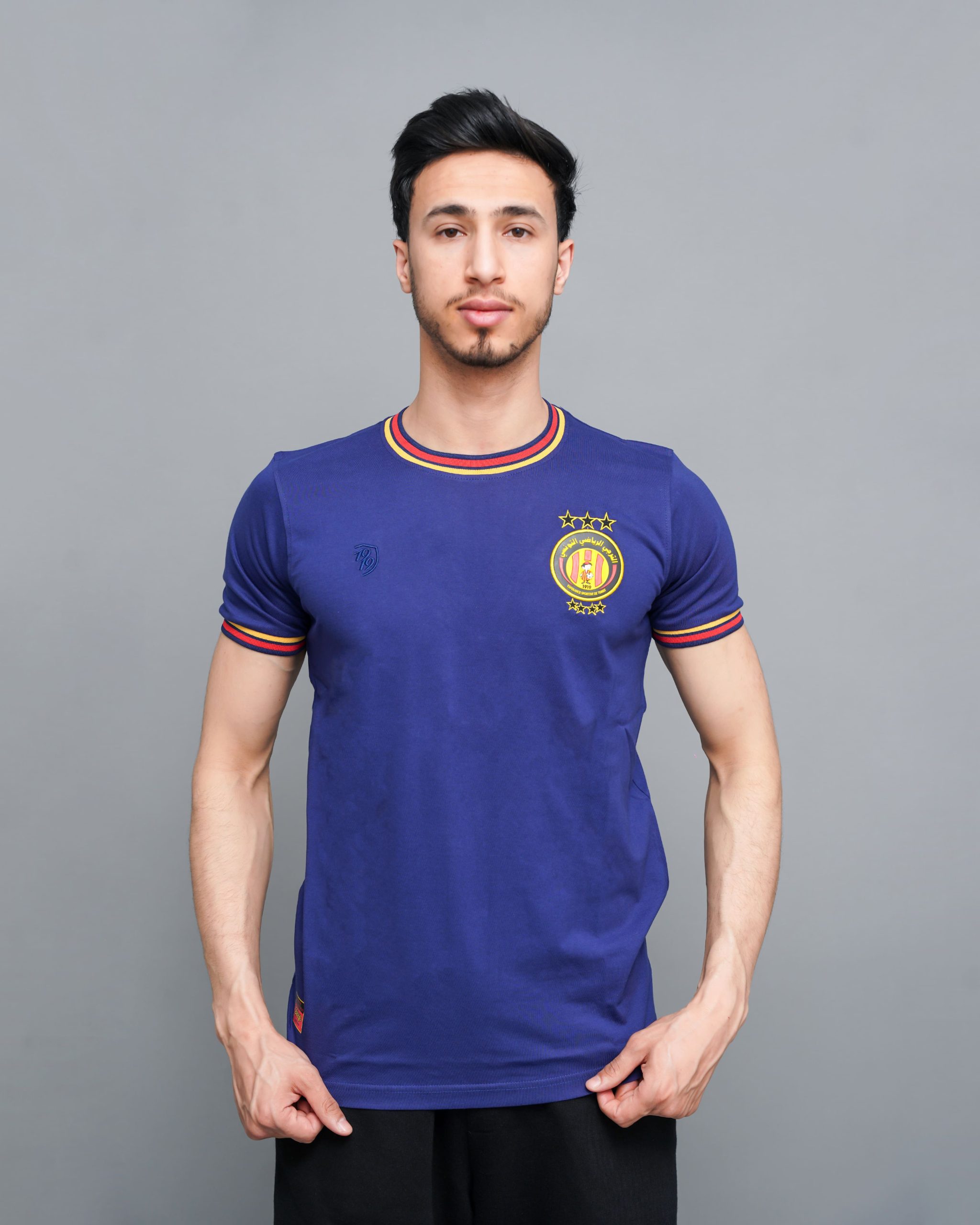 Avec sa teinte bleue affirmée, ce t-shirt rend hommage à l’une des tenues les plus emblématiques du club. Le logo brodé de l’Espérance ST trône fièrement sur la poitrine, accompagné d’une finition tricolore autour du col et des manches, inspirée des couleurs historiques du club. La coupe droite et les détails discrets en font une pièce facile à porter au quotidien.